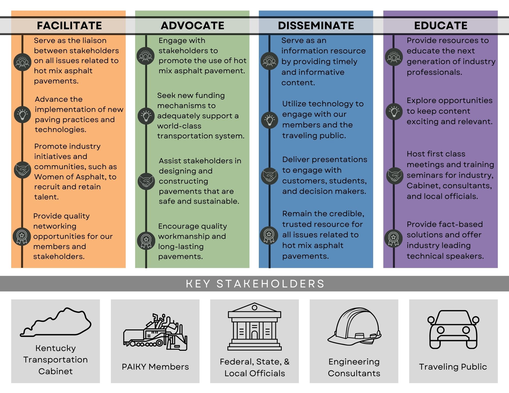 The Plantmix Asphalt Industry of Kentucky is the Commonwealth’s respected advocate for asphalt pavements of unmatched quality.